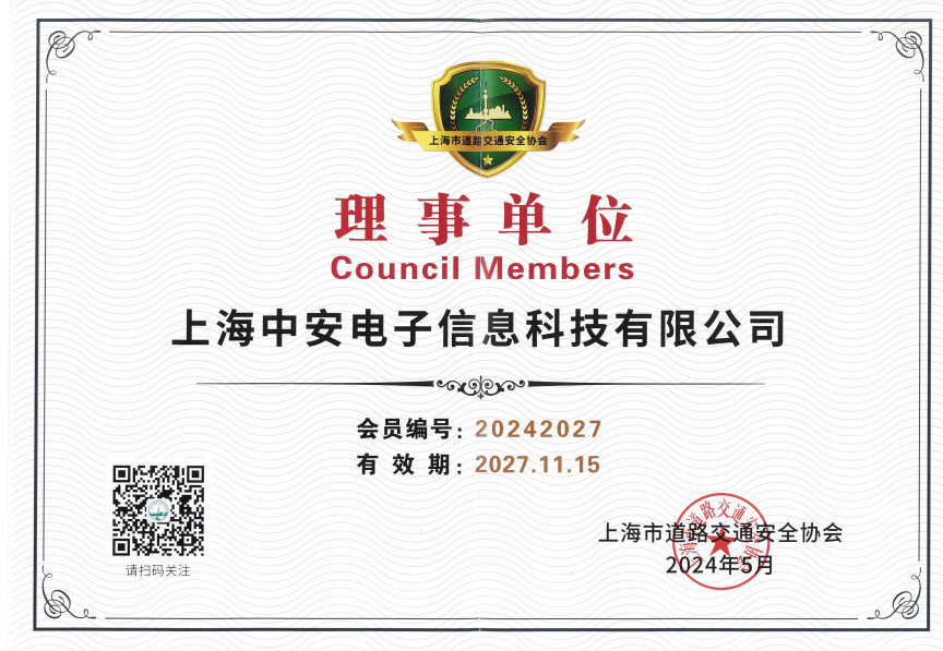 中安科技榮膺上海市道路交通安全協(xié)會理事單位稱號(2024-07-28)